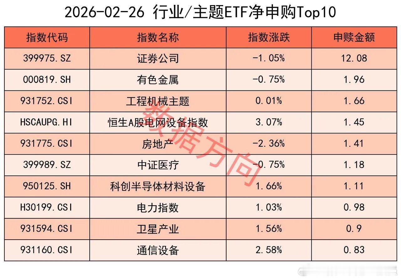 有色金属指数(1.96亿)进入申购榜;细分化工指数(-6.2亿)、细分有色指数(-2.7亿)、稀土产业指数(-2.64亿),一起进入赎回榜。