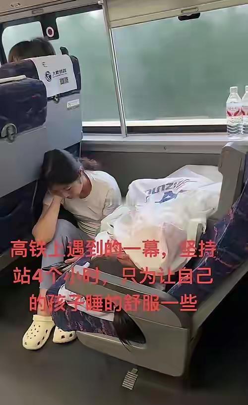 母亲这样做有错吗?怎么就“自我感动”了?换做是你带孩子出行,孩子困了,你不会这样做吗? 有网友说:我是母亲,带娃出行时遇到娃要睡觉,这样安排是最舒适的了。娃在坐椅上睡觉,大人在旁边坐(椅子的一角或地板上坐),坐累就站一站,这总比抱睡要舒服吧。所以也谈不上什么牺牲不牺牲。 现在有些网友怎么了,母亲为了孩子这样做也能喷,还有没有点人性啊!