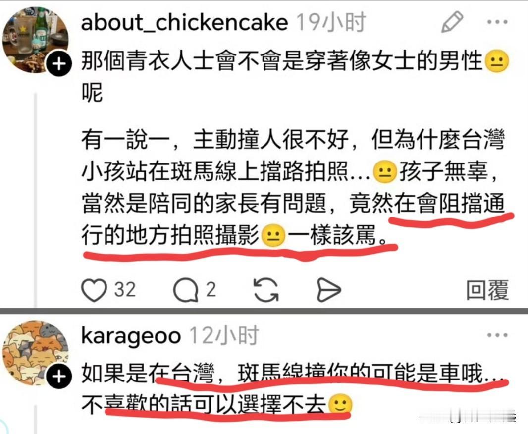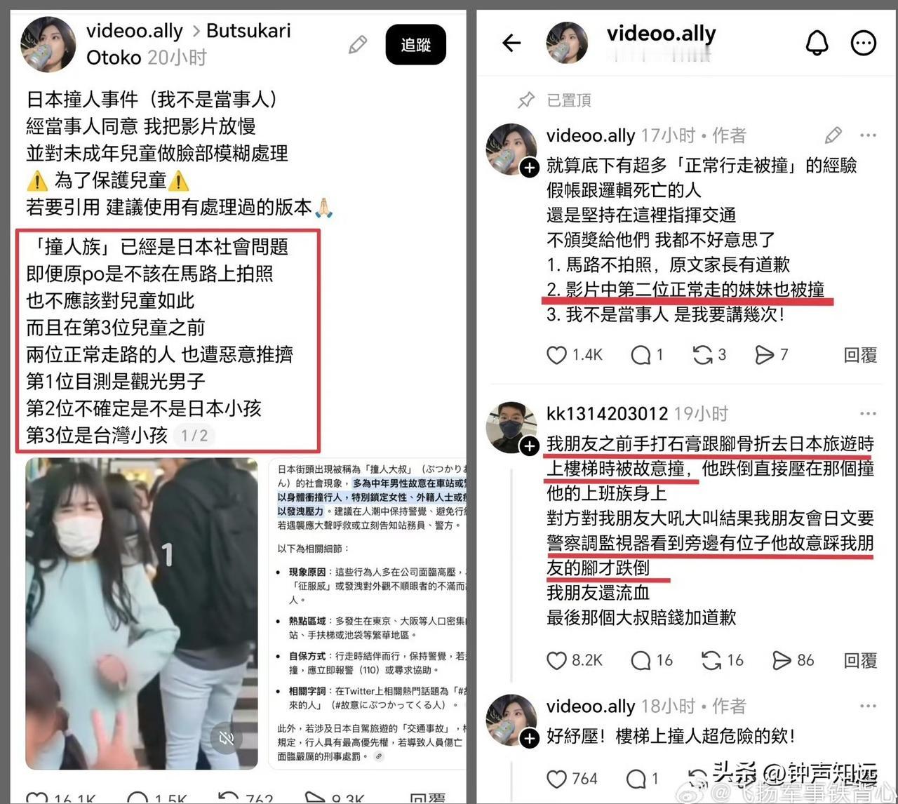台湾小女孩在日本被撞,青鸟居然说“干得好”“希望他们知道自己错在哪”,媚日到连日本人都看不下去了。 台湾小女孩在东京涩谷,被日本“撞人族”恶意猛推摔倒,明明是恶意伤人,视频清清楚楚,完全符合日本“撞人族”锁定→加速冲撞→快速逃离的特征。 各国网友普遍谴责暴力,直指“撞人族”恶意伤人。 结果岛内青鸟不心疼自己孩子,反倒帮施暴者洗地,说撞得好、是游客不对,把恶意冲撞说成“活该”,是非都不分了。 日本网友初期甩锅“不像日本人”,后期更多声音谴责暴力,不少日本网友都在骂施暴者、向母女道歉,说这是丢日本人的脸。 反观青鸟跪得站不起来,连基本良知都不要了,媚日媚到没底线,连日本人都嫌丢人。 孩子无辜被撞,错的是恶意伤人的撞人族,不是游客。颠倒是非、帮坏人说话,这种双标和软骨病,真的让人恶心。 青鸟这软骨病吃啥药才能好?