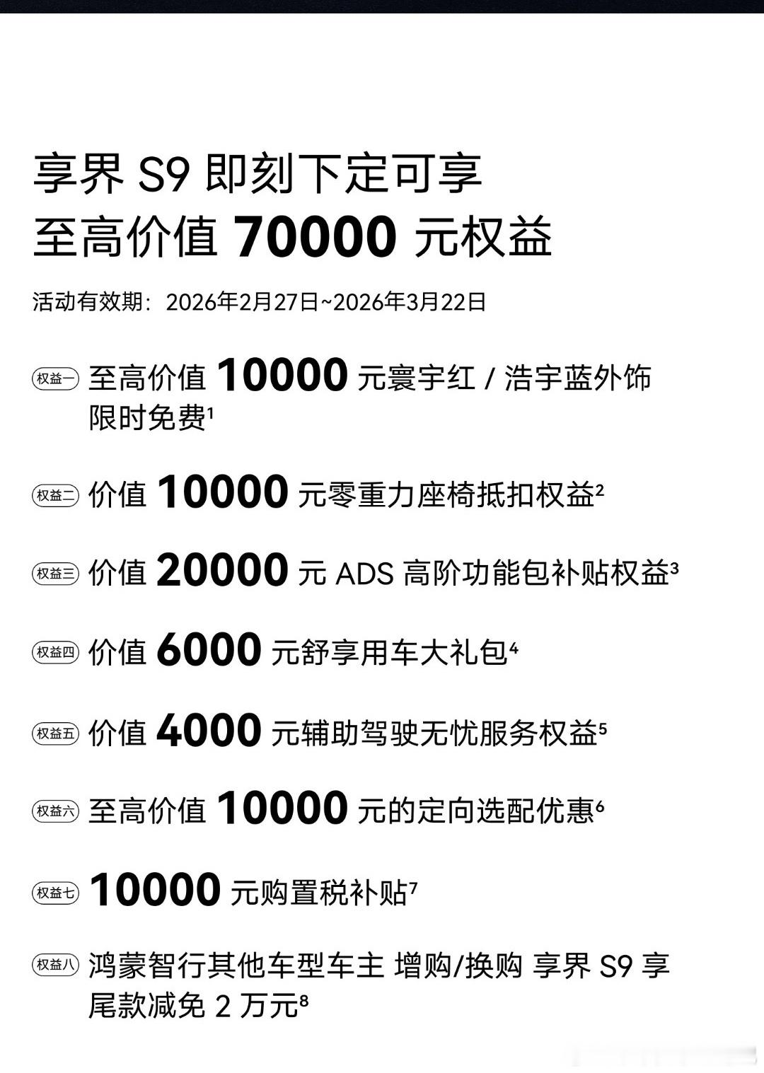 鸿蒙智行部分车型权益更新,增加购置税补贴: