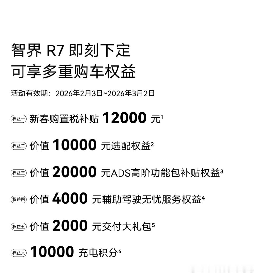 尊界S800 补贴15000元,比较特殊的是,尊界S800还提供给2026年已经交付的车主,补偿价值15000元的15W积分