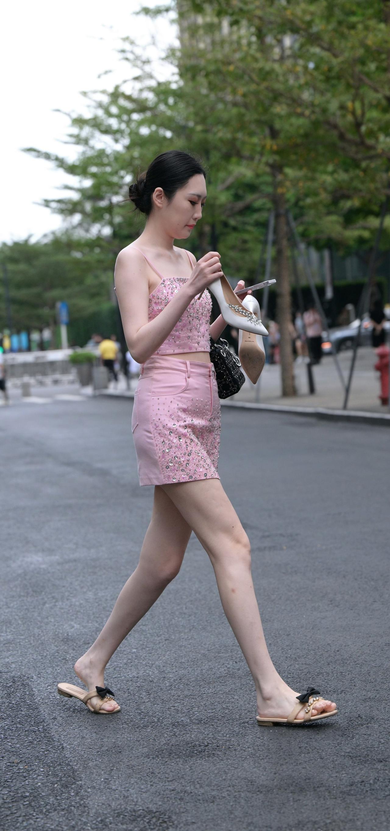 手上是高跟脚上是拖鞋
