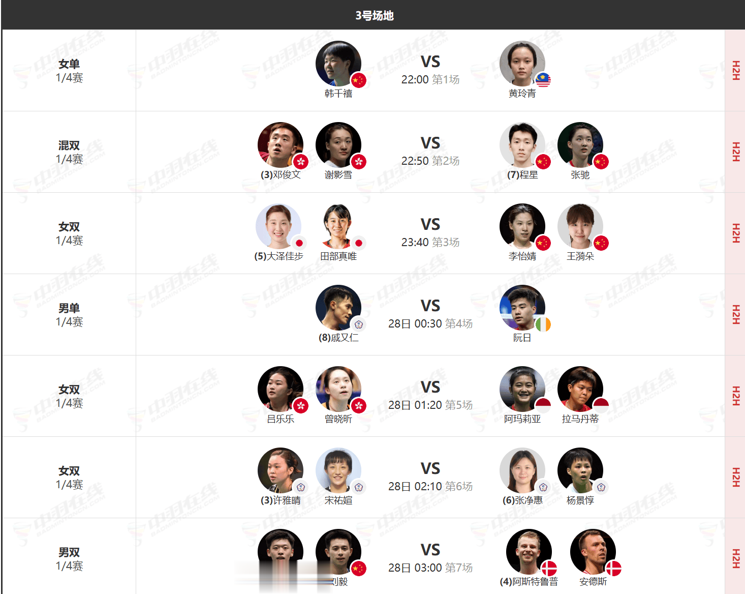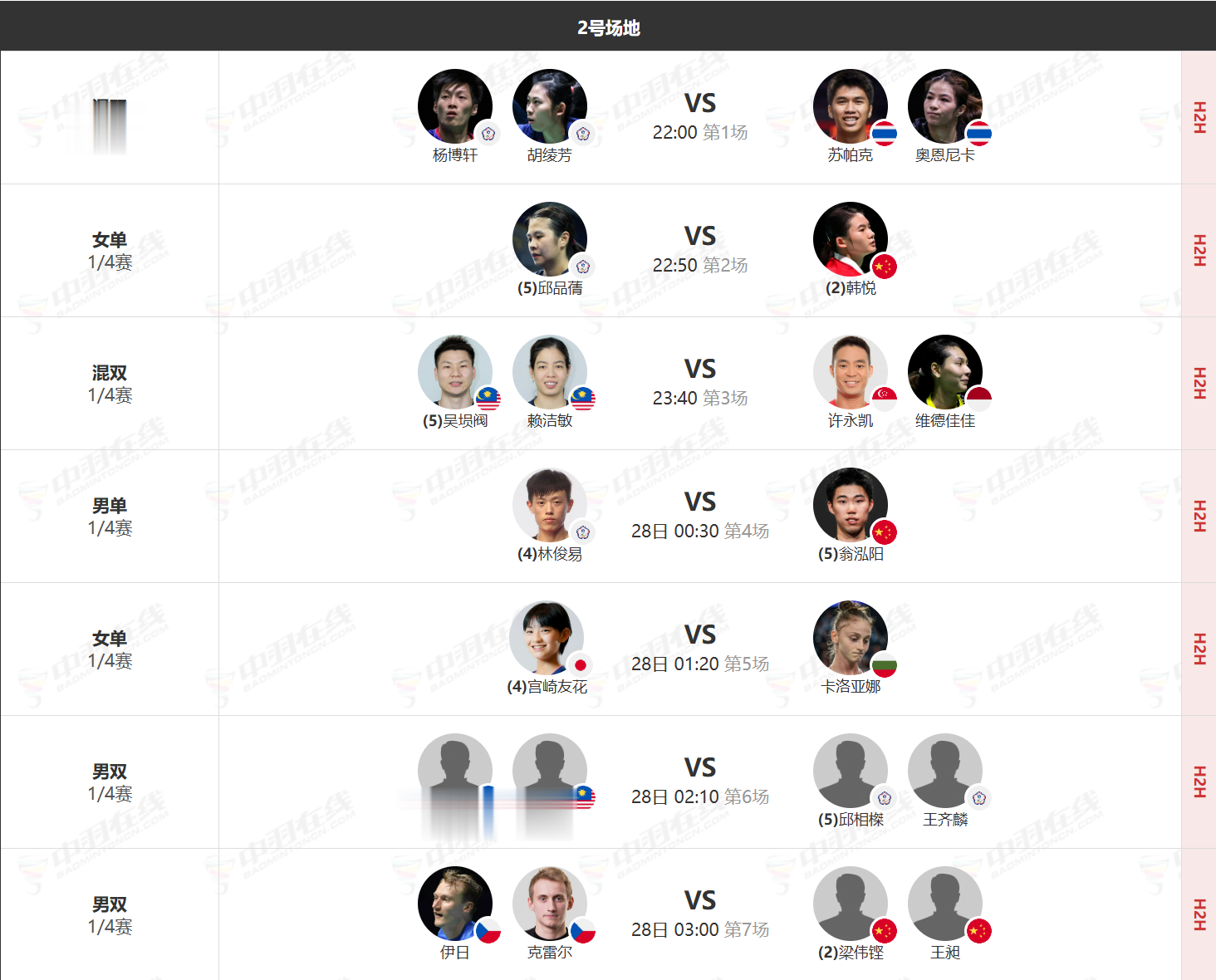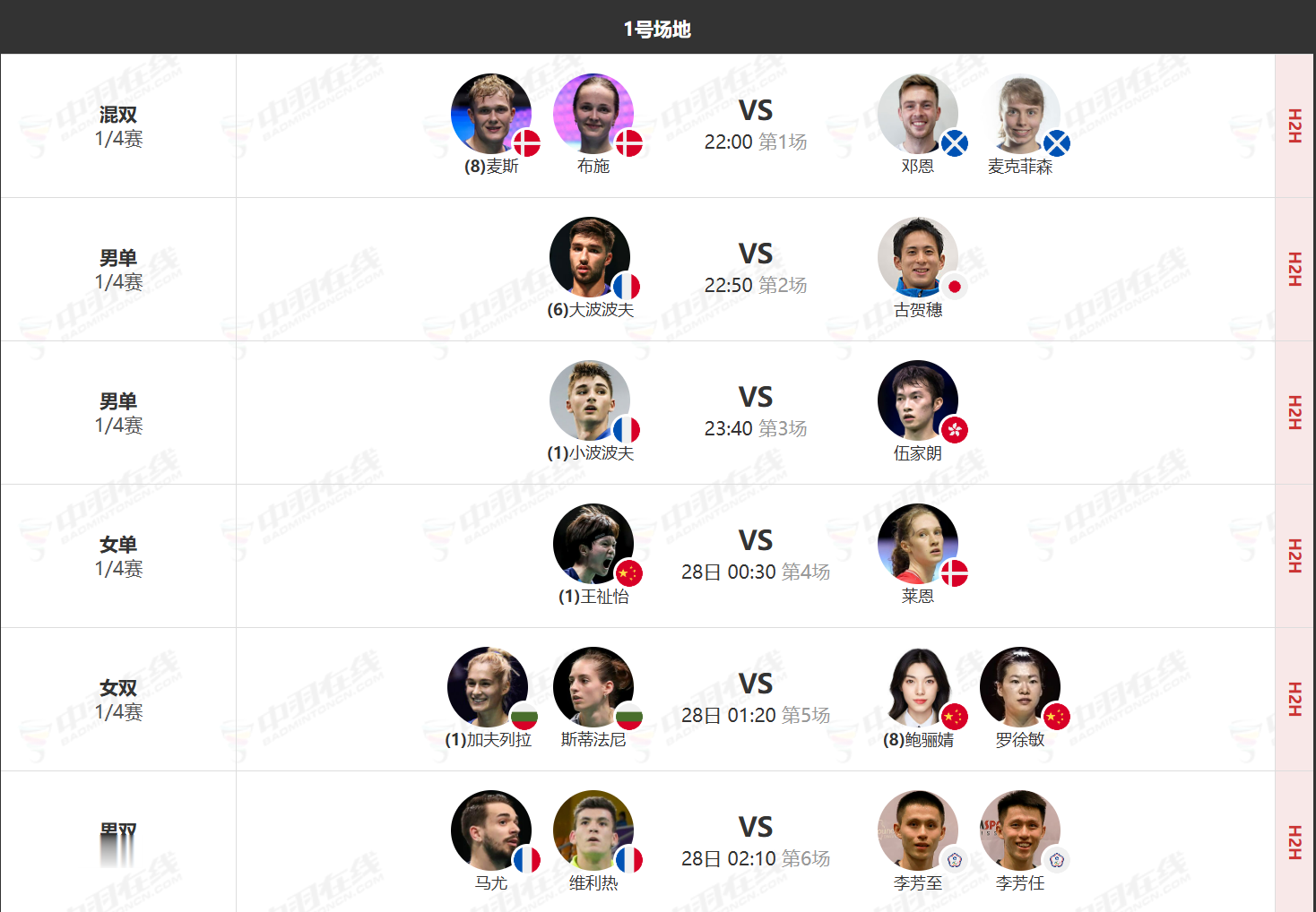今日中国选手的具体赛程如下:
