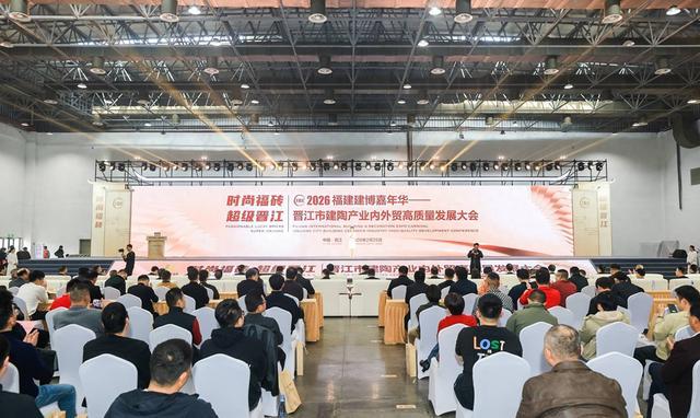 正月初九,年味还未散去,晋江磁灶镇特步会展中心已是热气腾腾。2月25日下午,“时尚福砖×超级晋江”——晋江市建陶产业内外贸高质量发展大会在这里举行。350余位建陶企业、经销商、异地商会代表齐聚一堂,共商产业发展大计,共绘高质量发展蓝图。