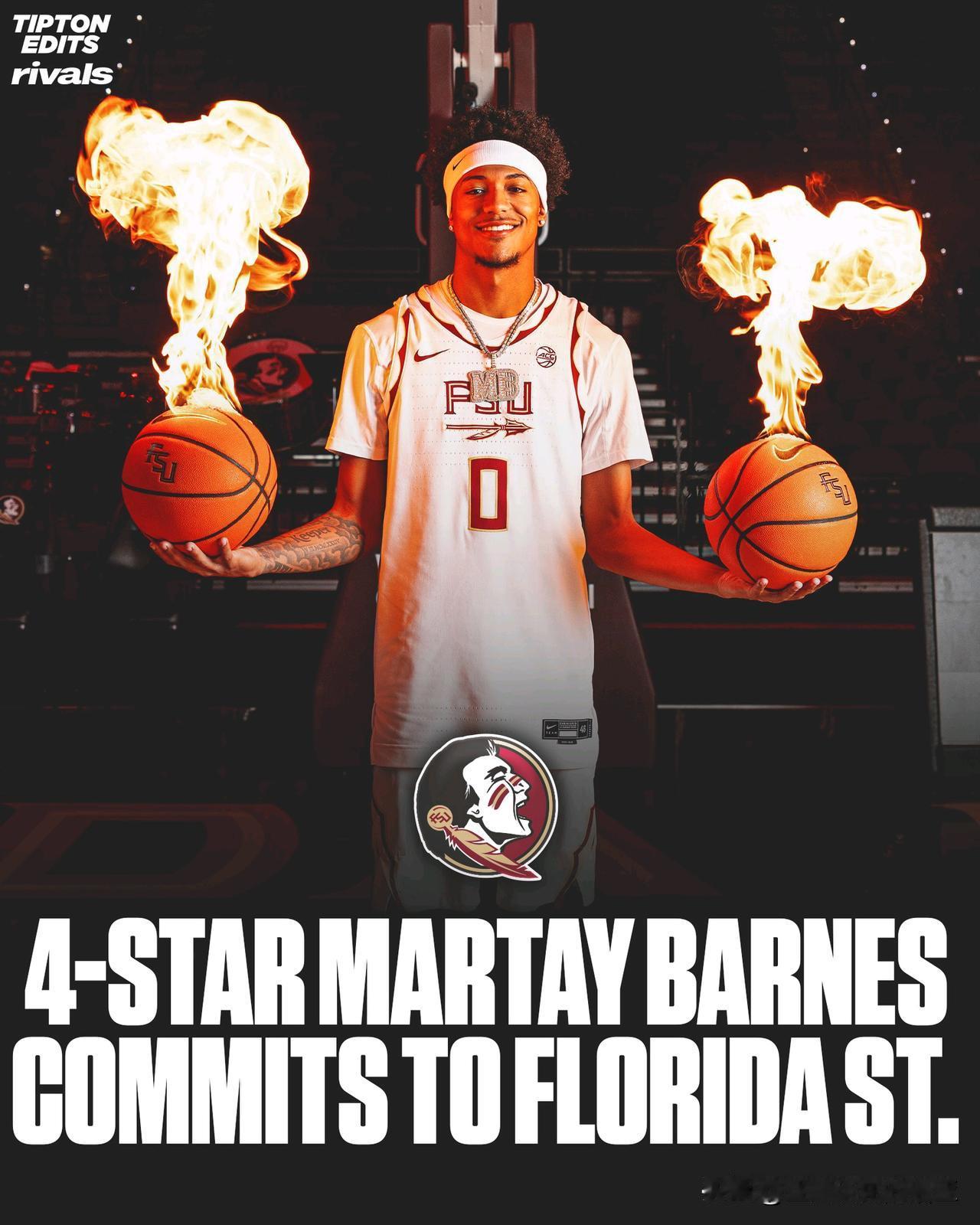 四星后卫Martay Barnes宣布承诺NCAA男篮 家乡球队佛罗里达州立,拒绝了奥本大学,身高6-2=188,高中就读于佛罗里达州The Academy of Central Florida,他表示主帅Luke Loucks在培养NBA后卫方面的经验,以及他对比赛的理解和传达这种观点的能力令人印象深刻,他很欣赏教练。