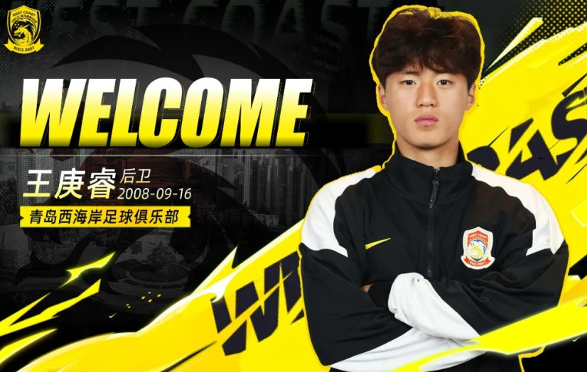 欢迎王庚睿加入青岛西海岸队!希望王庚睿尽快融入球队,在青岛这片足球热土上追逐足球梦想,与球队一同成长,为青岛足球的未来贡献青春力量!