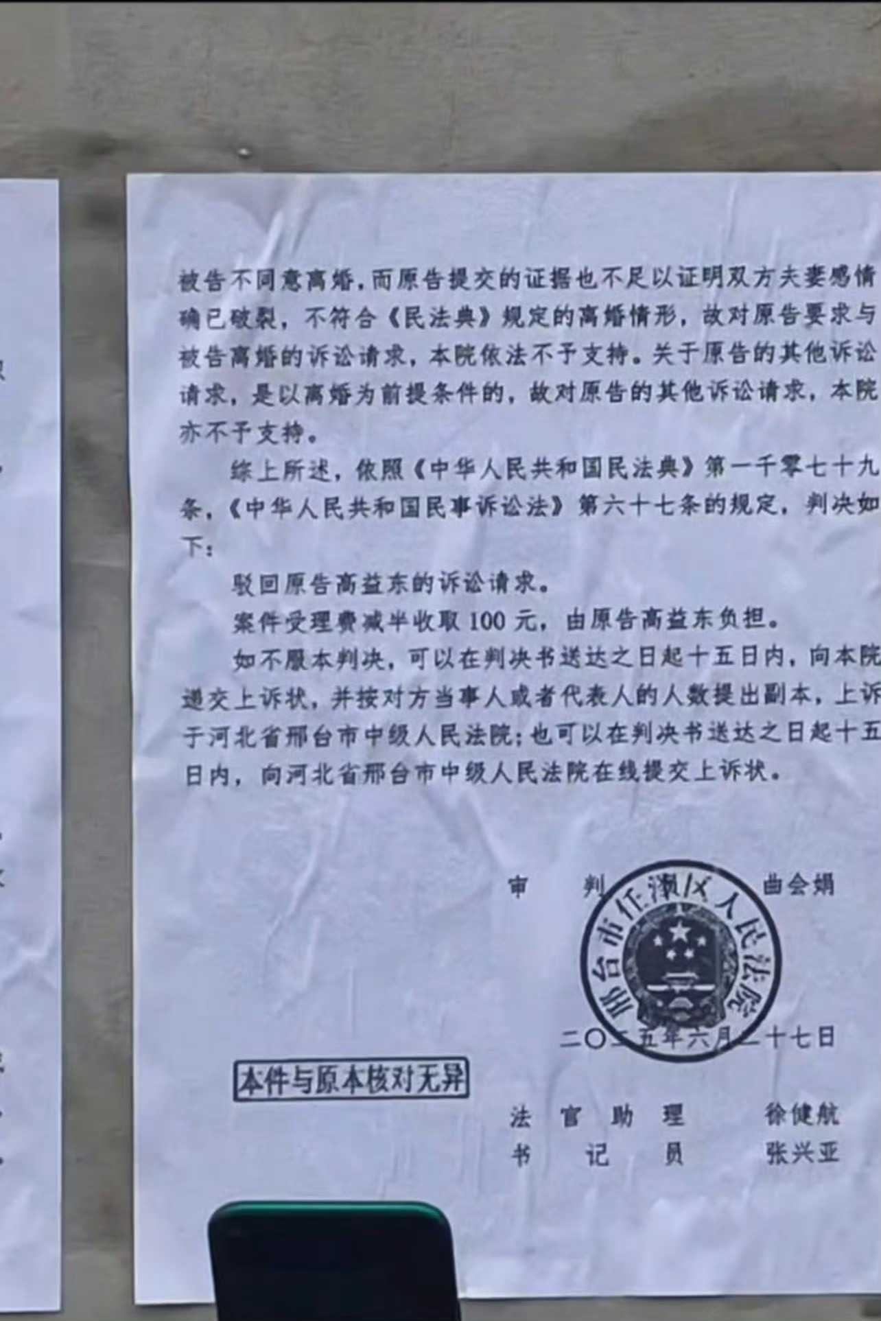 法院判决,夫妻感情未破裂,不准予离婚。