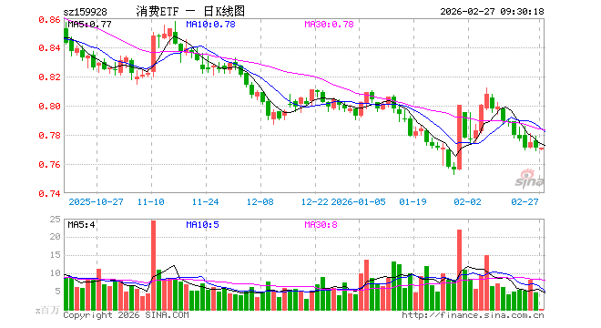 2月27日,消费ETF(159928)开盘跌0.13%,报0.770元。消费ETF(159928)重仓股方面,伊利股份开盘涨0.04%,贵州茅台涨0.05%,牧原股份涨0.04%,五粮液涨0.00%,温氏股份涨0.00%,泸州老窖涨0.04%,山西汾酒涨0.30%,海天味业涨0.39%,东鹏饮料跌1.48%,海大集团跌0.17%。