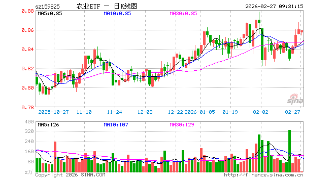2月27日,农业ETF(159825)开盘跌0.35%,报0.857元。农业ETF(159825)重仓股方面,牧原股份开盘涨0.04%,温氏股份涨0.00%,海大集团跌0.17%,藏格矿业跌1.20%,盐湖股份跌2.67%,亚钾国际跌0.11%,正邦科技涨0.00%,新希望涨0.00%,梅花生物涨0.00%,扬农化工跌0.13%。