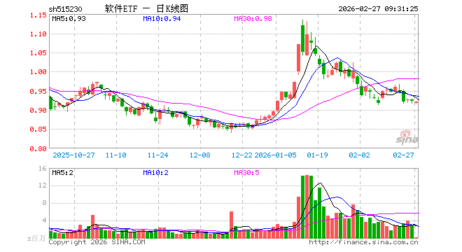 软件ETF(515230)业绩比较基准为中证全指软件指数收益率,管理人为国泰基金管理有限公司,基金经理为苗梦羽,成立(2021-02-03)以来回报为-7.68%,近一个月回报为-7.45%。