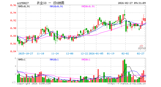 2月27日,农业ETF银华(159827)开盘跌0.86%,报0.917元。农业ETF银华(159827)重仓股方面,牧原股份开盘涨0.04%,温氏股份涨0.00%,海大集团跌0.17%,藏格矿业跌1.20%,盐湖股份跌2.67%,亚钾国际跌0.11%,正邦科技涨0.00%,新希望涨0.00%,梅花生物涨0.00%,扬农化工跌0.13%。