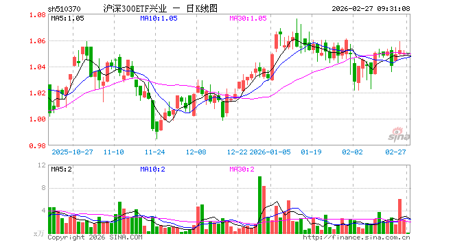 2月27日,沪深300ETF兴业(510370)开盘涨0.00%,报1.050元。沪深300ETF兴业(510370)重仓股方面,宁德时代开盘涨0.32%,贵州茅台涨0.05%,中国平安涨0.16%,中际旭创跌3.01%,紫金矿业跌0.43%,招商银行涨0.13%,新易盛跌3.86%,美的集团跌0.28%,兴业银行跌0.05%,长江电力涨0.04%。