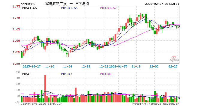 家电ETF广发(560880)业绩比较基准为中证全指家用电器指数收益率,管理人为广发基金管理有限公司,基金经理为陆志明,成立(2022-03-30)以来回报为65.94%,近一个月回报为-1.13%。