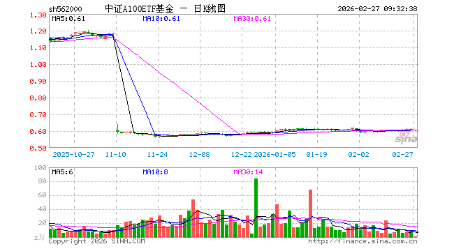2月27日,中证A100ETF基金(562000)开盘跌0.49%,报0.605元。中证A100ETF基金(562000)重仓股方面,宁德时代开盘涨0.32%,贵州茅台涨0.05%,中国平安涨0.16%,中际旭创跌3.01%,紫金矿业跌0.43%,招商银行涨0.13%,美的集团跌0.28%,长江电力涨0.04%,寒武纪跌2.03%,东方财富跌0.18%。