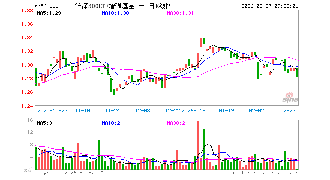 2月27日,沪深300ETF增强基金(561000)开盘涨0.00%,报1.294元。沪深300ETF增强基金(561000)重仓股方面,贵州茅台开盘涨0.05%,宁德时代涨0.32%,中国平安涨0.16%,美的集团跌0.28%,紫金矿业跌0.43%,立讯精密跌1.00%,招商银行涨0.13%,海光信息跌2.26%,中芯国际跌1.39%,东方财富跌0.18%。