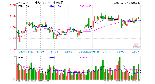 2月27日,A100ETF华夏(159627)开盘跌0.60%,报1.327元。A100ETF华夏(159627)重仓股方面,宁德时代开盘涨0.32%,贵州茅台涨0.05%,中国平安涨0.16%,中际旭创跌3.01%,紫金矿业跌0.43%,招商银行涨0.13%,美的集团跌0.28%,长江电力涨0.04%,寒武纪跌2.03%,东方财富跌0.18%。