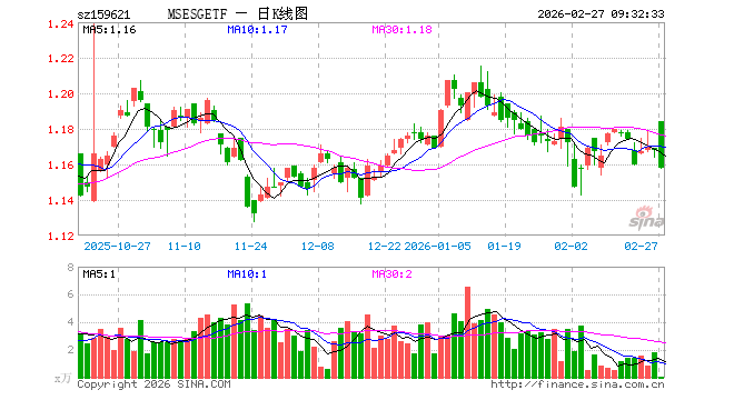2月27日,ESGETF国泰(159621)开盘涨1.37%,报1.184元。ESGETF国泰(159621)重仓股方面,宁德时代开盘涨0.32%,贵州茅台涨0.05%,招商银行涨0.13%,工业富联跌2.85%,中国平安涨0.16%,农业银行涨0.00%,工商银行跌0.29%,兴业银行跌0.05%,浦发银行涨0.00%,中际旭创跌3.01%。