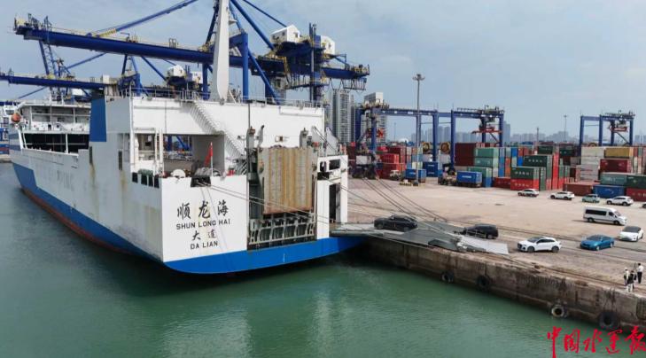 据了解,“顺龙海”轮为节能环保型货滚船,载重10838吨,长193米,设4层汽车舱,可载轿车约600辆,船舶各层可满足同时作业、高效装卸等要求。