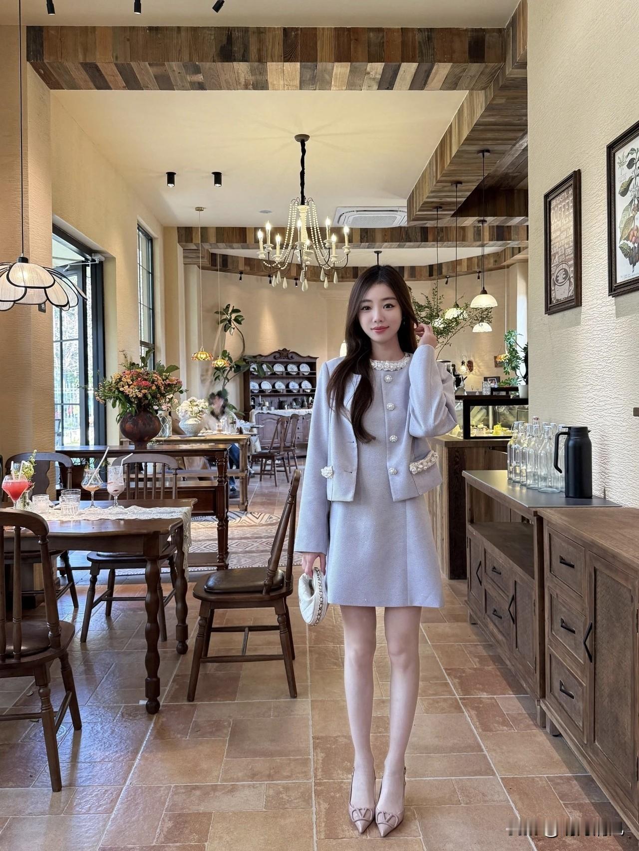 今天试了套紫色小香风,穿上就没舍得脱。 不是那种很扎眼的紫,是淡淡的、带点灰调的,像春天下午四五点的光线,柔和得刚刚好。短外套配同色系连衣裙,不用动脑子搭配,往身上一套就齐活。 镜子前站着看了好几眼,发现这种颜色挺神奇——不张扬,但显气色。皮肤被衬得干干净净的,整个人看起来软软的,又带点小精致。 店员在旁边说,这套卖得挺好的。我想了想,大概是因为它有一种“不费力的好看”吧。不用凹造型,不用想搭配,穿上就是温柔本人。 春天嘛,不就该穿成这样? 你们喜欢这种套装吗?还是更喜欢自己搭? 年底的快乐是卡罗拉给的小香风穿搭