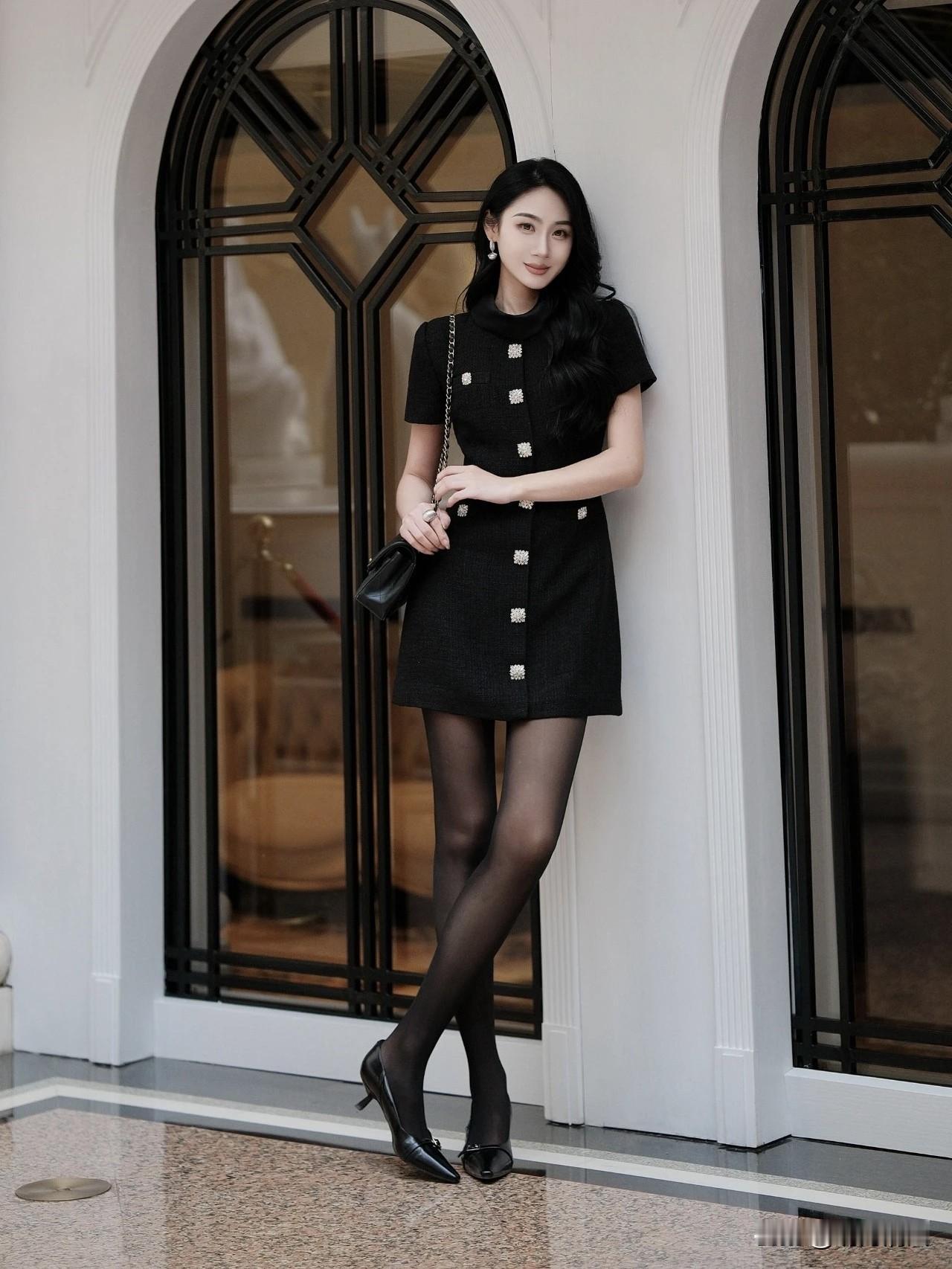 刚试了一条小黑裙,对着镜子转了大概有十分钟。 不是因为犹豫买不买,是那排扣子太精致了,每一颗都是小花形状,忍不住凑近了看半天。粗花呢的质地,摸上去有点厚度,版型挺括,穿上整个人被收得利落又温柔。 最绝的是侧面,裙摆刚好在膝盖上面一点,配黑丝和尖头鞋,显瘦到有点不真实。 我在镜子前侧身、转圈、抬手看袖子,反复折腾了好几个来回。朋友在旁边笑:至于吗? 至于的。有些裙子穿上只是好看,这条穿上,感觉自己走路都会不自觉挺直背,说话声音都会放轻一点。 女生都懂那种感觉吧?一件对了的衣服,连带着整个人都对了。 你们有没有这样一条裙子? 问界M9祝您新年手到福来时尚穿搭