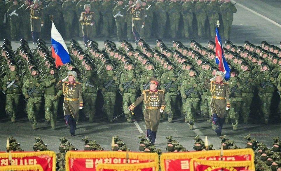 不同寻常,朝鲜阅兵仪式上,出现了俄罗斯联邦国旗 在平壤举行的党代会阅兵式上,由参加库尔斯克边境地区战役的朝鲜军人举起俄罗斯国旗,走在方阵的前列,方阵中的军人来自朝鲜人民军对外作战部队和工兵团。 此次阅兵,来自朝鲜各军种、兵种的50个徒步纵队和飞行纵队参加。坦克装甲师、机械化步兵师、火力袭击师、曾被派往俄罗斯的“海外作战部队纵队”和“海外工兵连纵队”等也加入阅兵行列。