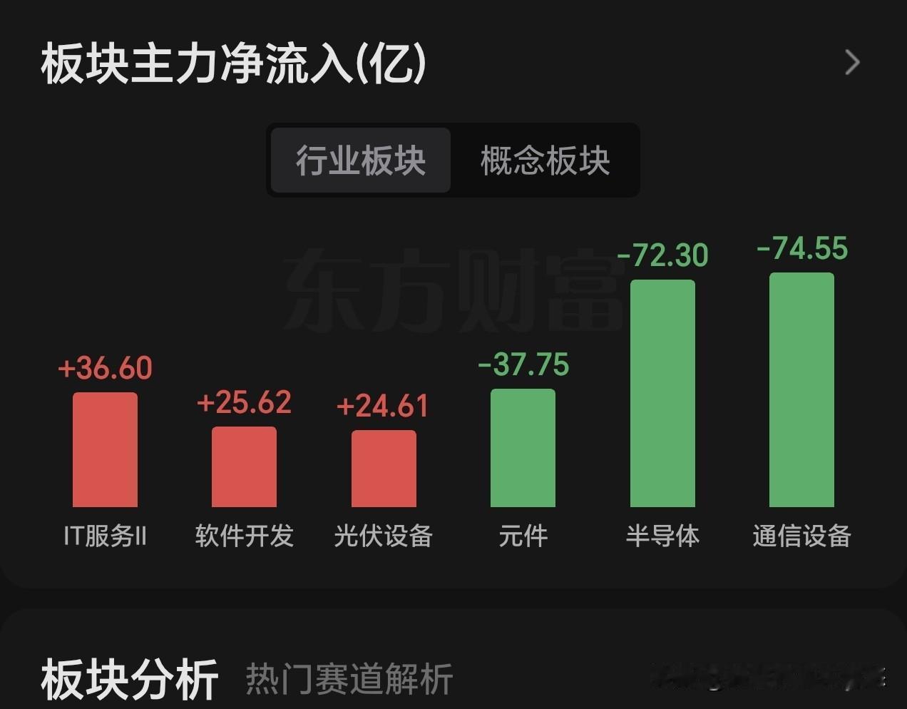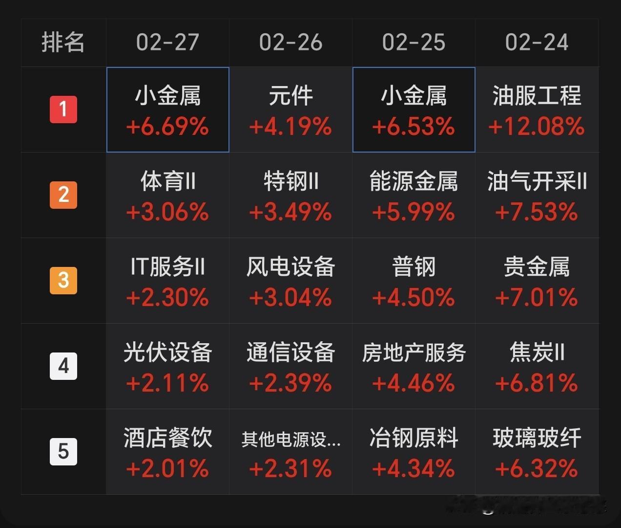 27日午间看盘及主力资金动向 今天早盘三大股指低开冲高回落,科技板块全面走弱,周期板块集体反攻,科技与资源跷跷板效应。目前看,今天吃面是大概率。 盘面上,小金属有色金属,商业航天,光伏设备,电力煤炭钢铁 软件开发及应用板块涨幅居前。 电子元件,半导体设备与芯片,电池,机器人,通信设备与cpo,等板块跌幅较大。 主力资金流入比较大的板块有 光伏设备有色金属,小金属,软件开发,钢铁,A应用等。 主力资金流出比较多的板块有 半导体芯片,新能源车,通信设备与cpo,消费电子及元件,电网设备与电力设备等。 截止发文,两市成交额1.32万亿元,比昨天萎缩640亿元,主力资金流出238亿元。 板块轮动很快,前面阴跌的卫星产业与Ai应用板块开始补涨,前几天涨幅居前的半导体材料芯片cpo及电网设备回调,只有有色金属持续上涨。人形机器人还在震荡整理,主力资金目前没有回流到这个板块。