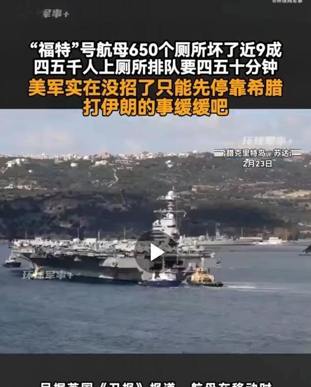 美军不想打仗,福特号航母上的士兵,不知道是谁想出了一个鬼点子,就是跑到航母最底层甲板的厕所,往马桶里丢垃圾。航母上的厕所都是真空集便系统,丢垃圾导致整个航母的管道堵塞,现在上厕所成了一个大问题。 一艘130亿美元的超级航母,本该随时准备干大事,结果却卡在厕所上动弹不得。福特号从2025年6月出海,本来以为半年就能回家,谁知道任务一拖再拖,现在已经超期好几个月,舰上4600多人天天憋着劲儿。真空集便系统本来是为了省水设计的,管道窄得可怜,一点异物就能全线崩盘。 结果有人把垃圾扔进底层厕所,马桶直接罢工,负压没了,污水倒灌,臭味到处飘。海军自己承认,这系统从服役起就问题不断,平均每天一两个维修电话,2025年还创纪录四天205次故障,维修队累得一天干19小时。船员排队上厕所动不动四五十分钟,有人干脆少喝水少吃饭,憋出毛病。媒体爆料,家属转述说堵塞部分就因为有人乱扔东西,违反规定。海军内部调查也指向人为因素,纪律松懈暴露无遗。 部署延长,船员错过家人葬礼、节日,情绪本来就炸,现在连基本生理需求都满足不了,心态能好才怪。有人私下跟家里吐槽,士气低到谷底,甚至考虑退役。福特号本该是美海军最先进的存在,电磁弹射、核动力样样顶尖,可后勤这块儿硬伤太明显。 真空系统从邮轮借来的技术,用在军舰上水土不服,高强度使用加上管线设计缺陷,一坏就连锁反应,整个分区厕所全废。海军花大价钱酸洗管道,一次几十万美元,还得靠港才能彻底搞定。2月23日停靠希腊克里特岛,就是因为海上修不动,只能临时靠岸补给维修。外界看热闹,说这仗还没开打,航母先自己把自己憋住了。 美军现在全球摊子太大,能调动的航母就那么几艘,中东一紧张就把福特号和林肯号都塞过去,捉襟见肘。船员疲劳作战,维护跟不上,问题越积越多。厕所这事儿虽小,却戳中要害:再牛的装备,人不顶用也白搭。 海军高层早知道系统有隐患,GAO报告2020年就点出来了,可到现在还是老样子。船员不是不想干活,是干不动了。部署时间破纪录,士气下滑,后勤拉胯,这状态下真要动手,执行力能剩多少?伊朗那边看着热闹,美军内部先乱套。花那么多钱造航母,结果栽在马桶上,讽刺不?