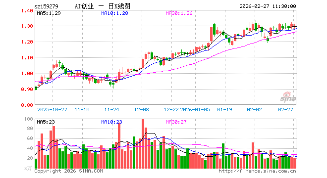 2月27日,截止午间收盘,创业板人工智能ETF华安(159279)跌0.76%,报1.300元,成交额2487.94万元。创业板人工智能ETF华安(159279)重仓股方面,中际旭创截止午盘跌6.40%,新易盛跌7.02%,天孚通信跌2.53%,蓝色光标涨2.50%,协创数据涨6.37%,同花顺跌0.07%,润和软件涨6.35%,北京君正跌4.30%,润泽科技涨3.32%,昆仑万维涨2.02%。