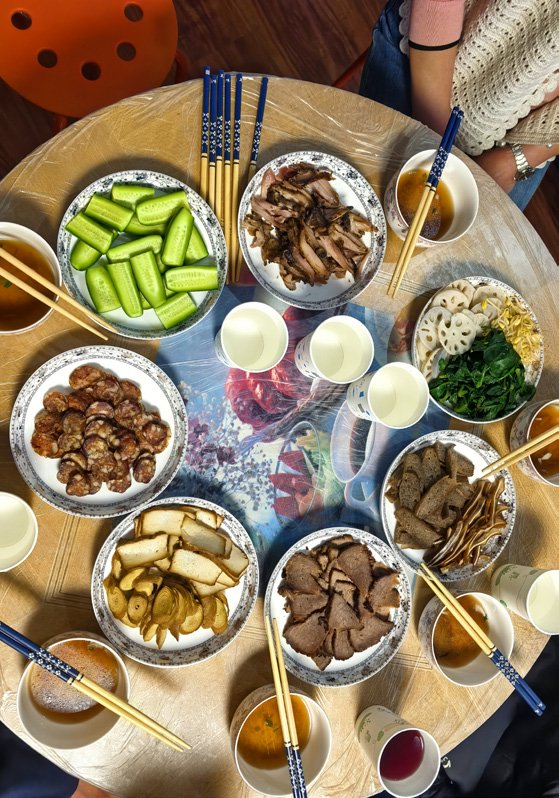 泡菜小炒是鸣金收兵的号角。热菜都是硬菜,木耳烧鸡、蒸鳜鱼、羊肉汤,陆海空的鲜与香在筷子里和舌尖轮番登场,粉蒸肉和八宝饭带来“蒸蒸日上”的好兆头,之后便是泡菜小炒来为团年饭收尾。