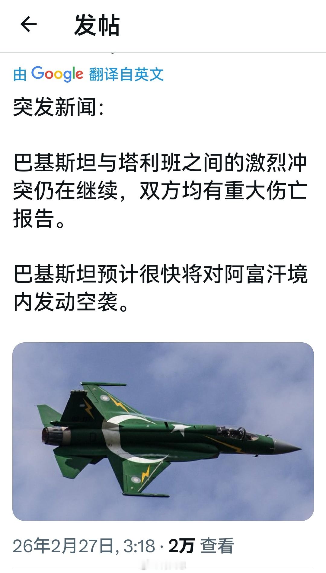 巴基斯坦对阿富汗在喀布尔、坎大哈和帕克蒂亚的军事设施进行了空袭。