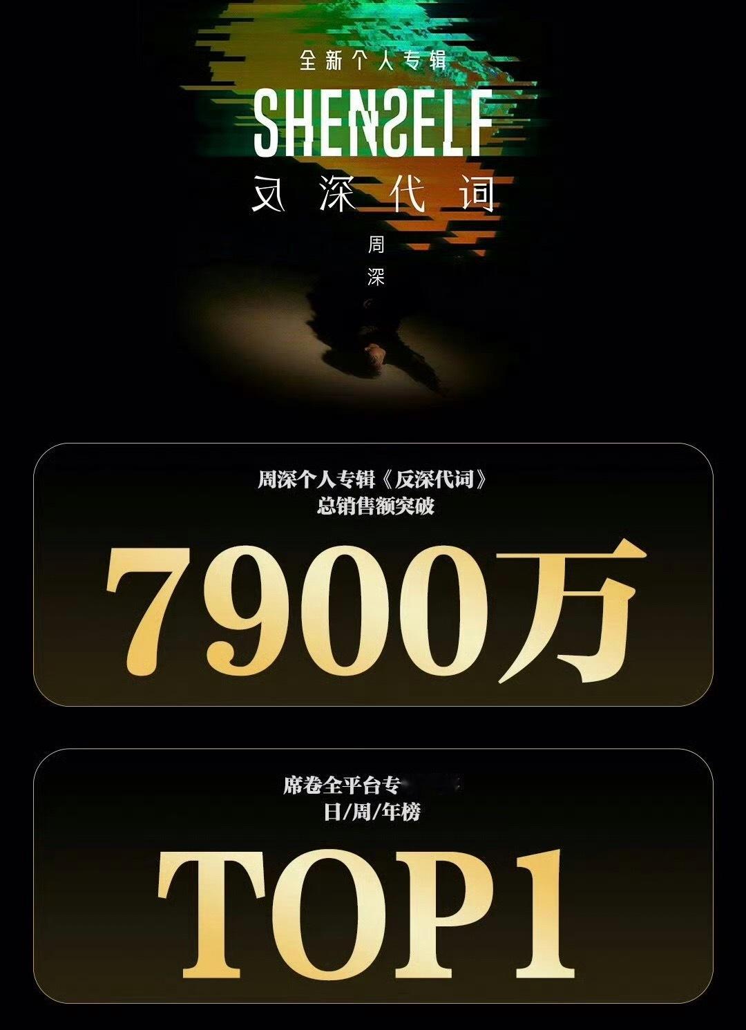 周深专辑《反深代词》总销售额破7900w,已经是内地专辑销量第一了 周深反深代词