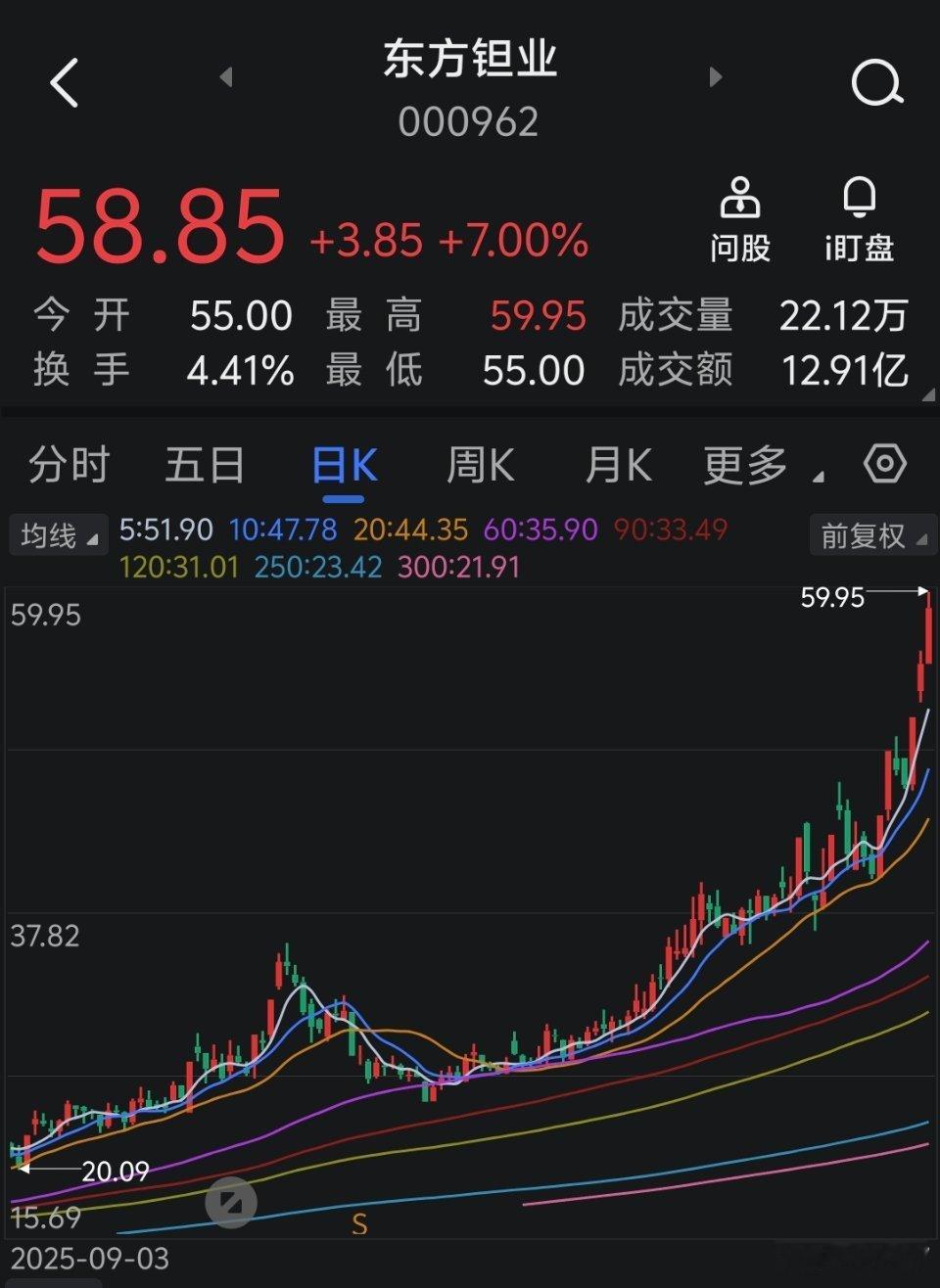 $东方钽业 sz000962$ 历史新高了,我又卖飞了。。