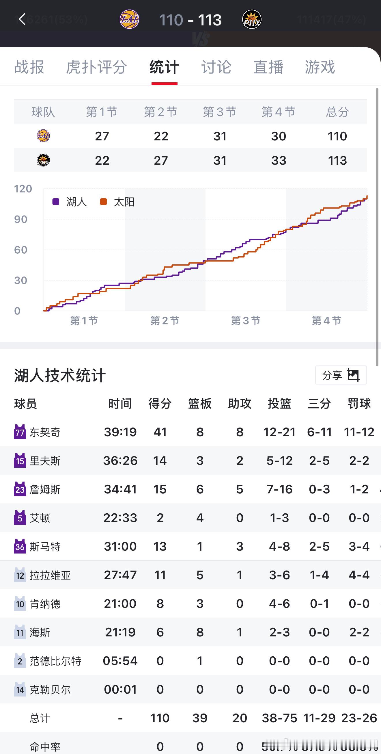 湖人vs太阳赛前我都不知道湖人怎么输,太阳拿什么赢,结果太阳居然赢了……真正看过比赛的来客观评价一下这场比赛