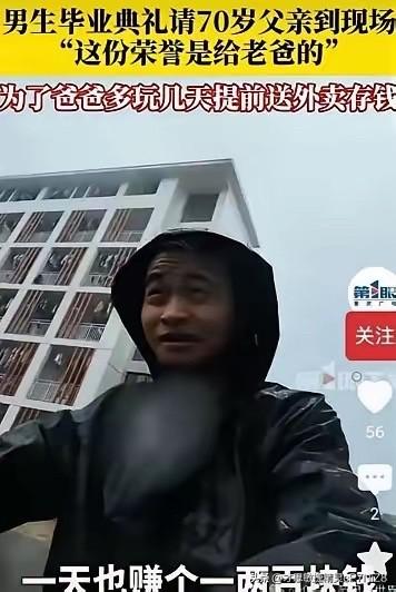 这才是读书的意义!”近日,贵阳一大学本科男生“骗”农村70岁的老父亲来参加他的毕业典礼,他告诉老父亲必须家长签字,才能领到毕业证。怕老父亲不舍得花钱,他提前几个月开始送外卖攒钱,就想带老父亲来贵阳转一转。 男生姓杨,是贵阳一所高校的应届本科毕业生,父亲老杨今年70岁,一辈子守着山里的薄田过日子。 老人家一辈子省吃俭用,别说去省城贵阳,就连县城都没去过几次,一双新鞋都要反复掂量才舍得买。 谁能想到,这句看似“谎言”的话里,藏着一个年轻人最滚烫的孝心。 70岁的老杨扎根大山半生,面朝黄土背朝天,掌心的老茧磨了一层又一层。 他把所有收入都攒给儿子当学费,自己连一块钱的矿泉水都舍不得买。 大山里的生活单调又清苦,老杨的世界只有田间地头和山间小路。 他这辈子没见过高楼大厦,没坐过平稳的客车,连新衣服都要穿到洗得发白。 在他的认知里,供儿子读书,就是这辈子最要紧、最值得的事。 小杨提前数月风里雨里送外卖,跑遍贵阳的街巷角落,一分一厘攒着路费。 他太了解父亲的执拗,直白说带父亲游玩,老人定会坚决拒绝。 唯有这个温柔的“骗局”,才能让一生节俭的父亲,踏上去省城的路。 如今总有人大肆宣扬“读书无用论”,说寒窗苦读不如早早打工赚钱。 可这类人根本不懂,读书的核心价值,从来不止是谋求生路的技能。 更是刻进骨子里的善良、感恩,和回馈亲人的能力。 读书从来不是为了逃离故土,更不是为了割裂原生家庭的羁绊。 而是让我们拥有足够的能力,回头托起那个用一生托举我们的人。 让辛苦一辈子的父母,也能看看山外的世界,感受一份迟来的欢喜。 毕业典礼现场,老杨看着穿学士服的儿子,浑浊的眼里满是泪光。 这个一辈子没出过大山的老人,笨拙又骄傲,那是他半生辛劳换来的荣光。 没有奢华的排场,却比任何盛大的场景,都更让人泪目动容。 我们终其一生追问读书的意义,答案其实就藏在这份孝心之中。 知识让我们明辨是非、懂得感恩,让我们有底气守护最亲的人。 那些轻视读书的人,永远体会不到知识带来的温暖与力量。 小杨的故事平凡又普通,却戳中了无数人内心最柔软的角落。 父母的付出从无奢求,可子女的反哺,就是对他们最好的报答。 这才是读书最本真的意义,也是人间最动人的温情。 各位读者你们怎么看?欢迎在评论区讨论。