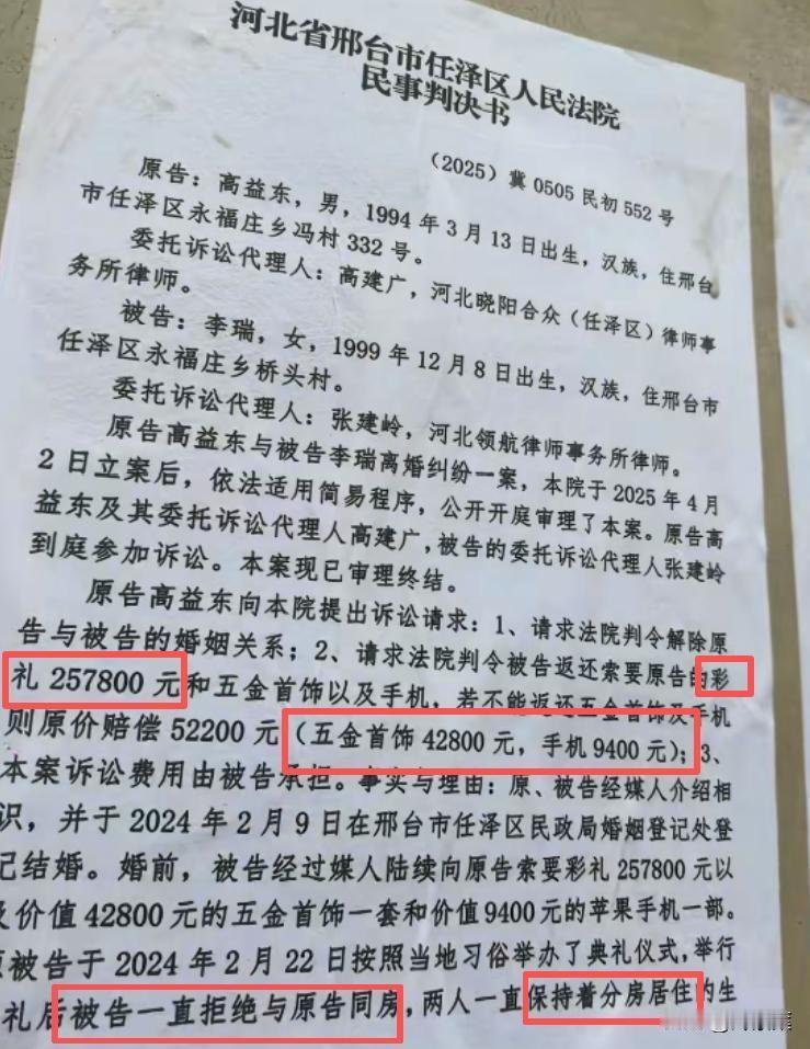无论男女,婚后都有履行夫妻生活的权利和义务。如果女子嫁人后不履行夫妻生活义务,还以感情没破裂的名义不离婚,那就是故意坑人了。而现在的法律却有意无意支持某些女子的如此骗婚骗财,甚至给男人增添了无尽风险。无论是结婚还是订婚,如果女子硬说自己不同意过夫妻生活,或者发生关系时同意事后反悔,那很可能把丈夫和男友送进监狱,之前山西大同就出现了类似案件。这次河北邢台这女子,结婚10个月既不同床也不离婚,而且彩礼和相关费用男方花了近50万,托上一年后再离婚,彩礼不退还,男人就什么也没有了。