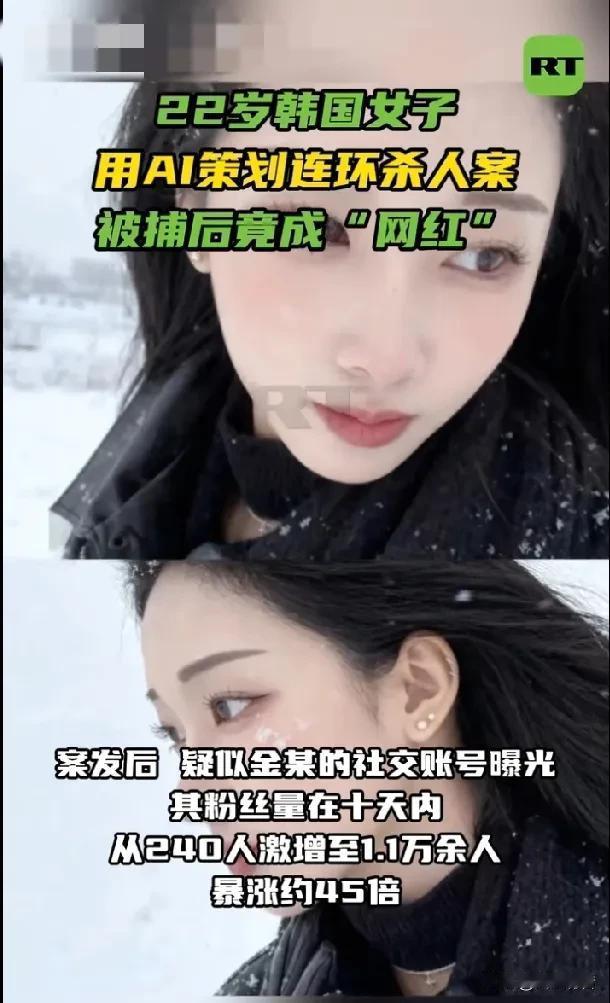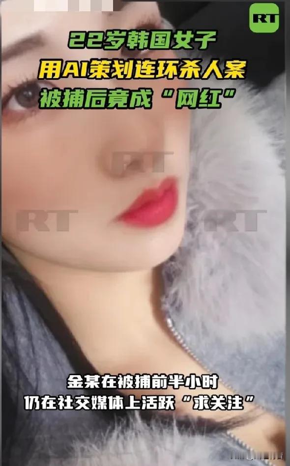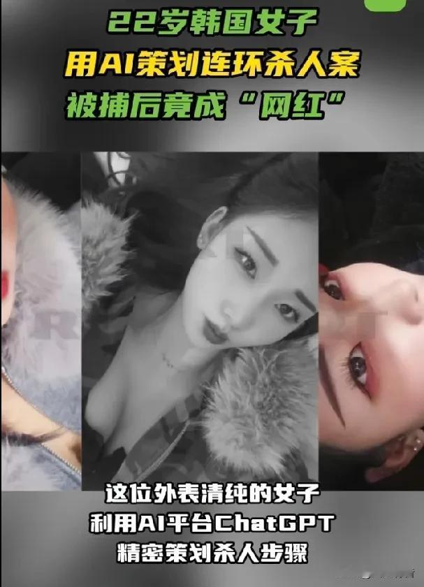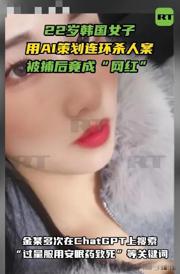 22岁韩国女子用AI策划连环杀人案,被捕后竟成“网红”,粉丝量暴涨45倍。 据《今日俄罗斯》报道,近日,一位22岁的韩国女子金某因涉嫌在汽车旅馆内先后诱杀三名男性,造成两死一重伤而被警方逮捕。这位外表清纯的女子不仅利用AI平台ChatGPT精密策划杀人步骤,在被捕前半小时仍在社交媒体上活跃“求关注”。 据韩媒报道, 2025年12月,金某开始连环作案,首名受害者为其当时的男友,该男友喝下金某递的掺有抗焦虑药物的饮料后失去意识,两天后苏醒报案。 2026年1月28日及2月9日,金某在韩国首尔江北区一带的旅馆内向两名20多岁男性递送掺有抗焦虑药物的饮料,导致两名受害者身亡。 事发后,韩国国立科学搜查研究院在死者体内检出“多种且大量”的混合药物成分,警方发现金某作案前已在住所内预先配制好多药混合的毒饮料。 金某作案期间社交媒体账号保持活跃,直至2026年2月10日下午被警方紧急逮捕前30分钟,她仍在发布限时动态并打上“互粉”“欢迎关注”标签,警方怀疑她当时极有可能在物色下一个作案目标。 2026年2月19日,首尔江北警察署表示,已正式以谋杀、特殊伤害及违反《毒品类管理法》等指控,将嫌疑人金某移送检方。此前,警方曾以“伤害致死罪”进行调查,后在获取关键证据后决定提升指控等级。 警方数字取证结果显示,金某在2025年12月首次作案后,曾多次在ChatGPT上搜索“过量服用安眠药致死的可能性”“饮酒后服用安眠药的后果”等关键词,尽管AI已给出“可能导致死亡”的明确回答,金某仍在后续作案中增加了药物剂量,警方认定金某已充分预见到受害者死亡的可能性,属于高预谋性的故意杀人。 截至2026年2月25日,警方已完成犯罪侧写师访谈,对金某进行了反社会人格诊断测试,并深入调查是否还存在其他尚未被发现的受害者。 案发后,疑似金某的社交账号曝光,其粉丝量在十天内从240人激增至1.1万余人,暴涨约45倍。评论区竟有韩国网友发表“漂亮即无罪”等荒唐评论,更有网友从她多为独照的账号推测其“生活孤独”,感叹若有朋友交心或许不会“变成恶魔”。当地时间26日该账号已被设为私密账号。