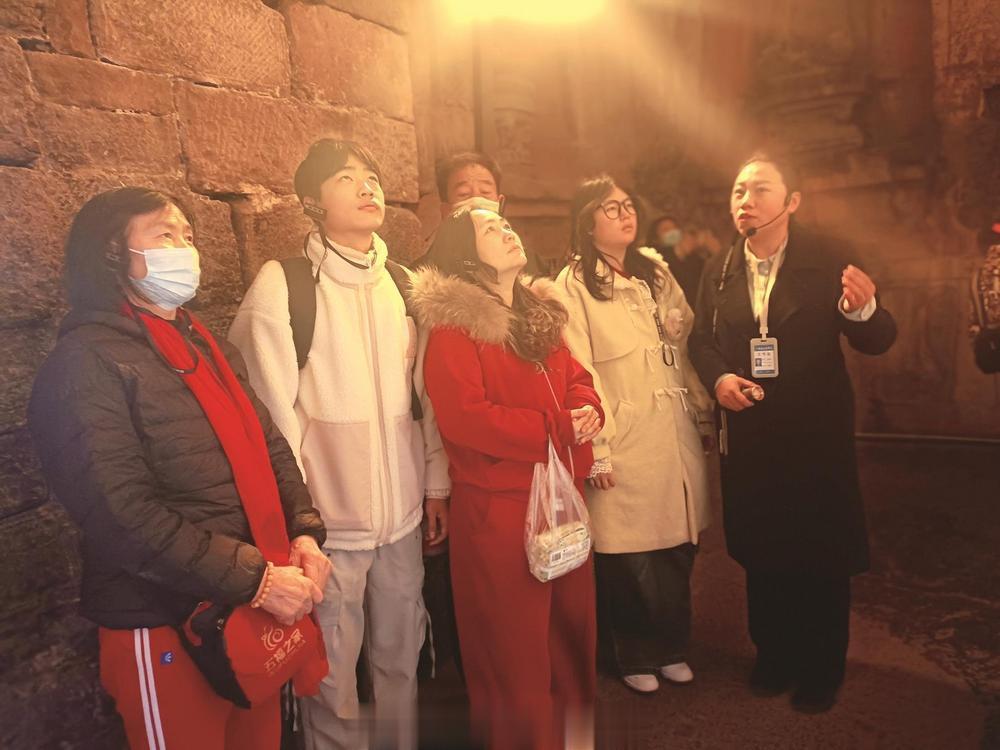她抹了抹嘴,又精神抖擞地站到了等待她的游客面前。在这个春节,响堂山的每一位讲解员都在以这种“特种兵”的方式运转。
