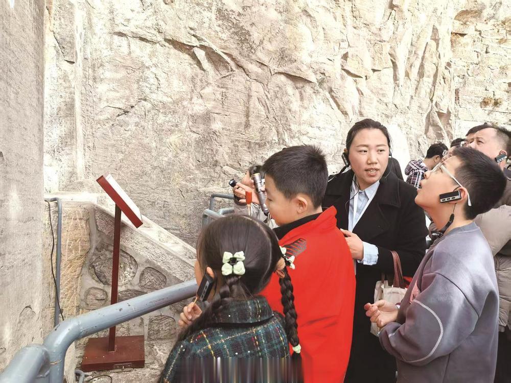 从北齐石窟的开凿历史,到窟内佛像的艺术风格,从高欢的传说,到历代文人的题记——吴娜讲得细致入微,游客听得入迷。