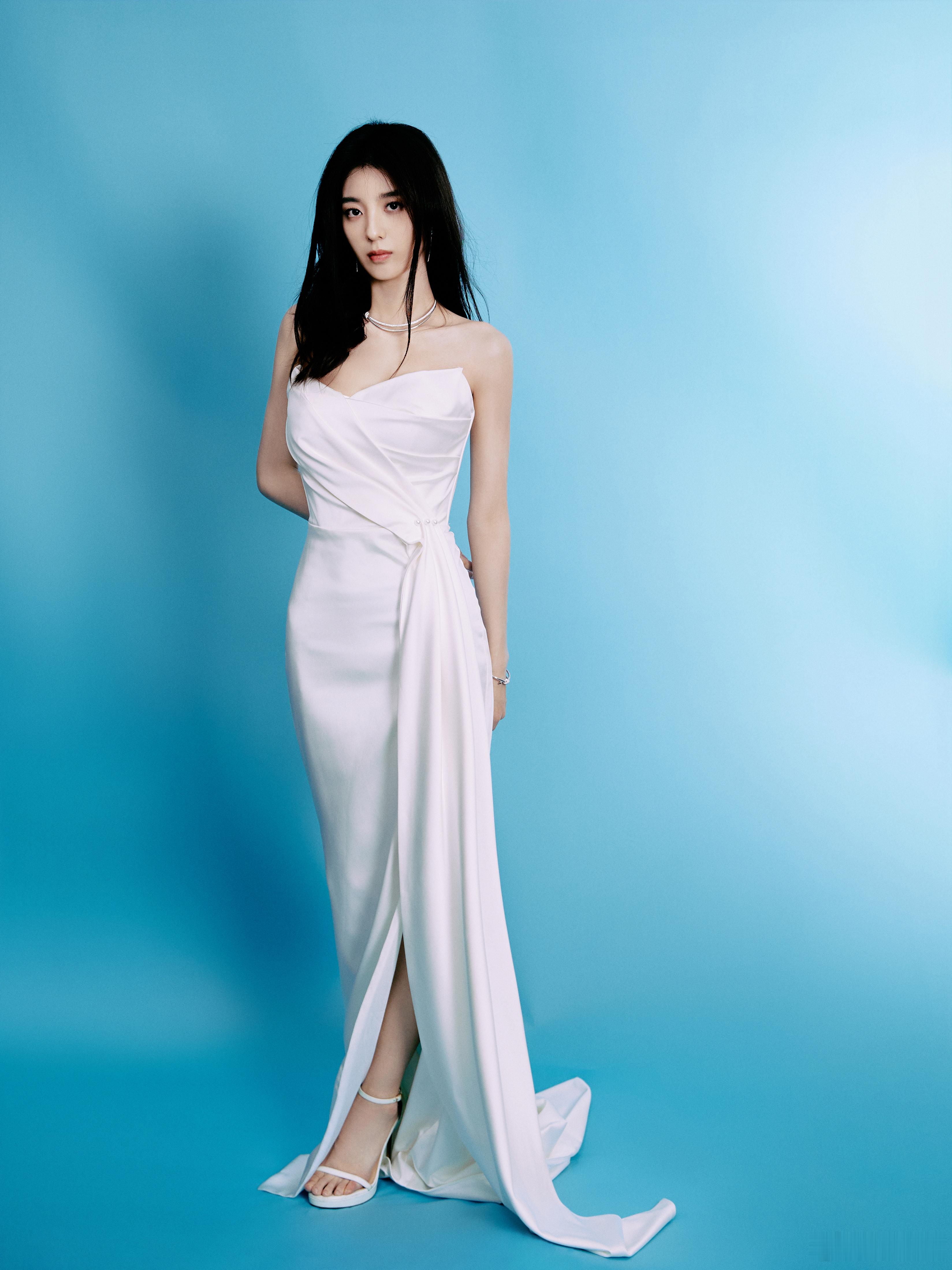 万鹏 白裙如月光倾泻,缎面裹着冷冽的温柔,开衩处露出的线条,是藏在优雅里的勾魂锋芒。