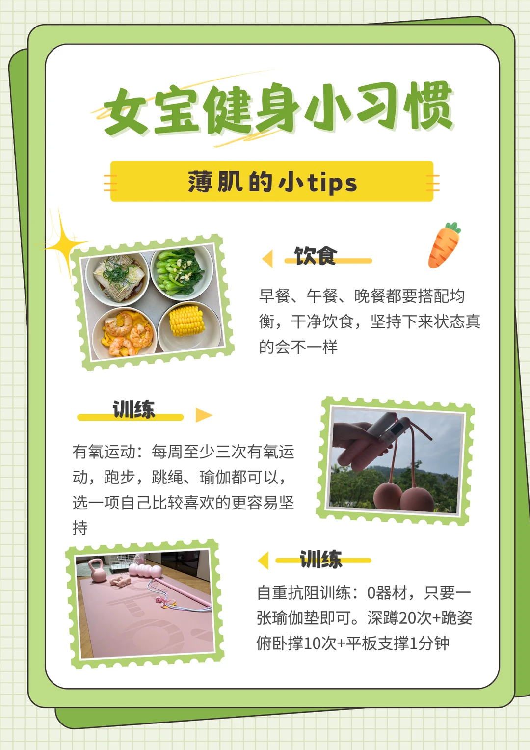 今天就给同样想练出干净薄肌、紧致线条的女宝,分享一套我一直在用的习惯,工作再忙也能坚持,状态越练越好~