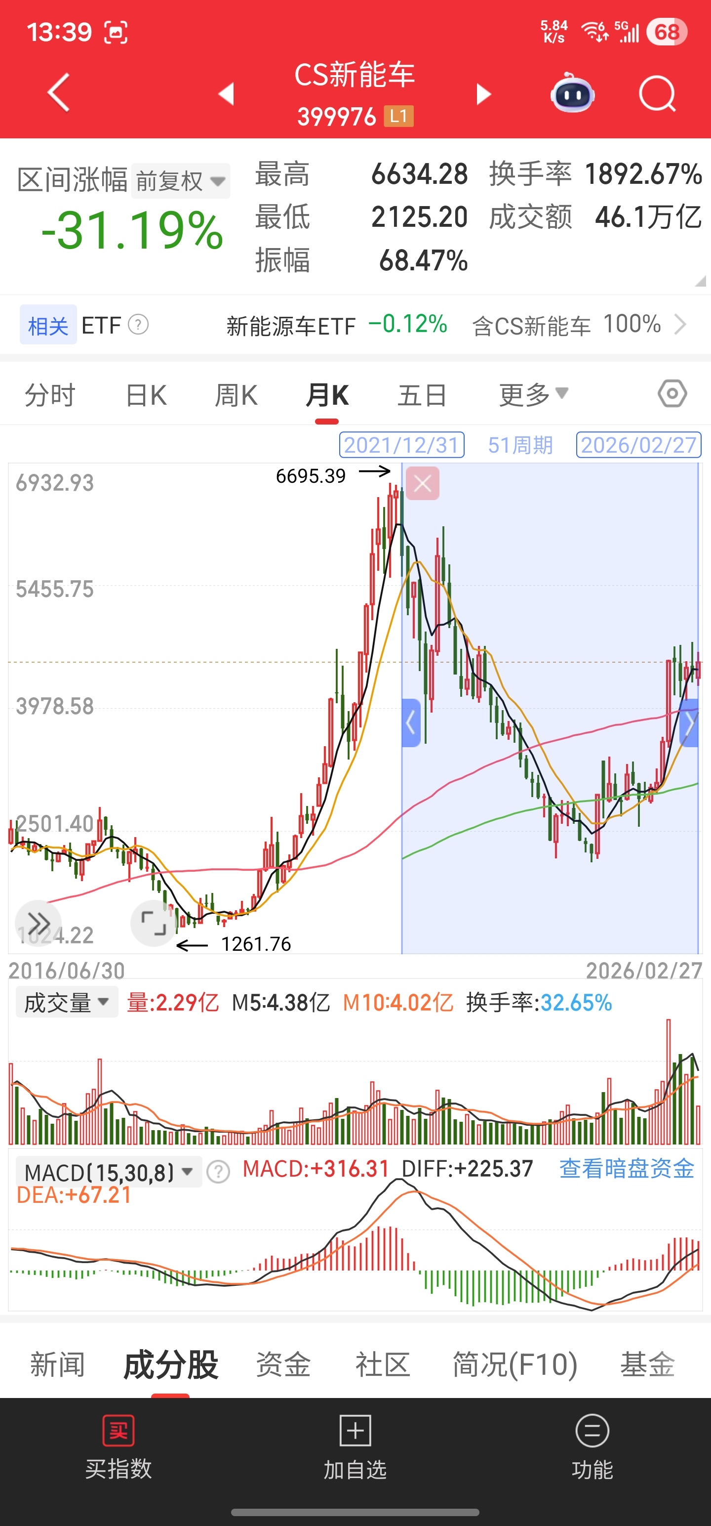 2023年的时候做过几次很短的波段,可惜后面一直没腾出仓位来再参与,稀有金属只是新能源车一部分权重,目前新能源车指数距离高点还跌着30%……