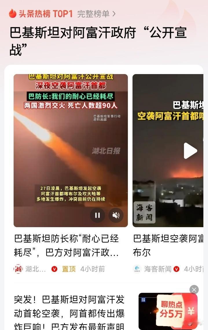 巴基斯坦对阿富汗公开宣战,巴方称已经对阿富汗没有耐心了。巴方称,去年边境爆发冲突,在各方努力下已经停火。现在因为矛盾激发再次冲突,已经没有耐心了。 双方交火,已经造成多人死亡,如果把局势扩大,后果不堪设想啊!巴基斯坦的武器基本上都是中国制造和合作生产的。打起来个人感觉阿富汗还是要落下风的,有什么问题还是要坐下来谈判才是硬道理。希望不要把局势扩大,对谁都不好。 你们怎么看巴基斯坦和阿富汗的矛盾呢?为什么要升级?