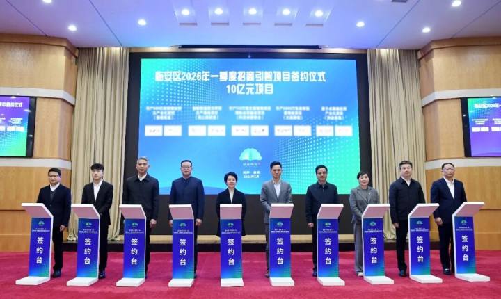 2月26日,临安区新春第一会暨一季度招商引智项目集中签约仪式举行,本次集中签约按10亿元以上、制造业、服务业、人才四个领域共20个项目,首次实现全产业项目签约,总投资73.23亿元,其中10亿元以上项目5个。