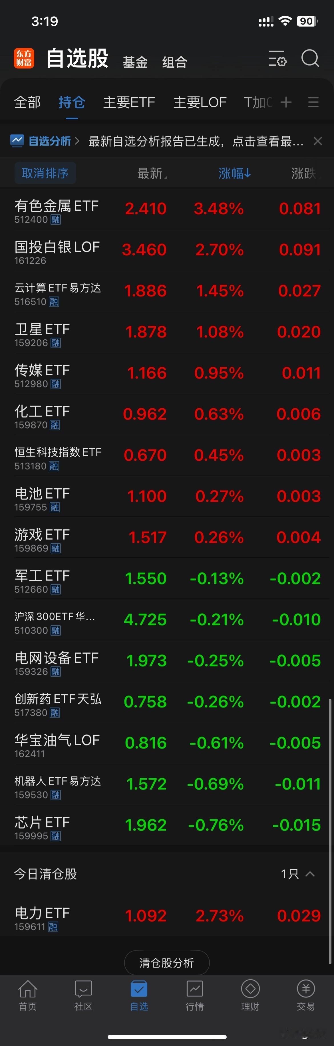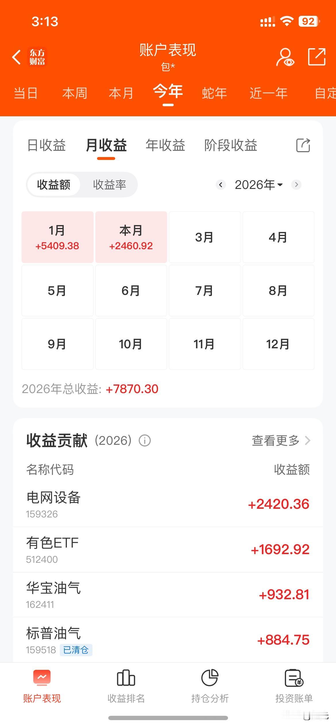 收盘了,今天大盘下午逐步上涨,但我的持仓股票表现不理想,尾盘阶段卖了几只,手上还剩5个品种。仓位在25%左右,今天股票加ETF两个账户微赚2百块。这里就不贴图了。今天是本月最后一天,按照惯例盘点一下本月账户情况。股票账户盈利1万2千6,ETF账户盈利2千4左右。本月总共盈利1万5。持仓股票和ETF见附图[笑]。