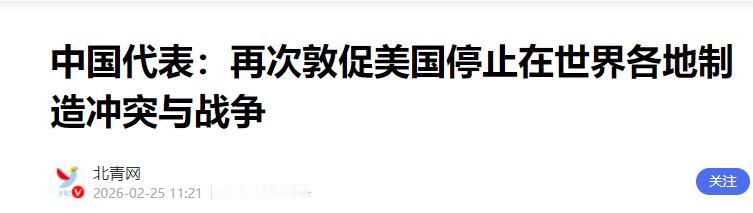 中国和美国当众摊牌了 2月25日凌晨,在联合国安理会俄乌冲突问题会议上,美国代表在发言中再次对中方进行污蔑抹黑,傅聪大使当场予以驳斥:中国不是乌克兰危机的制造者,也不是当事方,中方在乌克兰问题上的立场坦坦荡荡。 联合国安理会是处理全球安全事务的核心平台,各国参会的目的是沟通问题、化解矛盾、守护和平。 美国代表在这样严肃的国际场合,不反思自身在乌克兰危机中的所作所为,反而编造不实言论,将矛头对准中国,刻意歪曲中国在乌克兰问题上的立场与行动,这种做法完全是别有用心,也是对国际议事规则的不尊重。 傅聪大使在现场明确指出,中国不是乌克兰危机的制造者,也不是冲突的当事方。中方在乌克兰问题上的立场一以贯之、坦坦荡荡,没有任何隐瞒和含糊。 从危机爆发至今,中国始终站在和平一边,始终坚持尊重各国主权和领土完整,始终遵守联合国宪章宗旨和原则,始终呼吁俄乌双方停止冲突、坐回谈判桌,用对话协商的方式解决分歧,这是中国不变的态度。 乌克兰危机升级以来,中国始终以实际行动推动局势缓和。我们没有向冲突任何一方提供致命性武器,始终严格按照国际规则管控军民两用物项。我们多次向乌克兰及冲突受影响地区提供人道主义援助,为当地平民送去生活物资与必要帮助,缓解民众的困境。 我们还派出特使开展穿梭外交,同俄罗斯、乌克兰、欧洲、美国等相关各方保持常态化沟通,积极搭建沟通平台,推动一切有利于停火止战的努力落地。这些实实在在的举措,国际社会有目共睹,绝不是美方几句污蔑之词就能随意抹煞的。 美方反复在国际场合抹黑中国,核心目的就是转移国际视线,掩盖自身在乌克兰危机中的责任。美国不断向乌克兰输送武器装备,持续推高冲突烈度,让战火持续蔓延、无辜平民不断伤亡,让和平的希望一再推迟。 美方不仅不推动和谈,反而刻意挑动阵营对立、制造分裂对抗,这种火上浇油的做法,才是导致危机难以解决的重要原因。美方不反思自身问题,反而无端指责中国,是典型的双重标准,也是不负责任的表现。 在联合国安理会的公开场合,面对美方的当面污蔑,中国代表没有丝毫退让,第一时间澄清事实、回击谎言。 这充分说明,中国在国际事务中始终坚守公平正义,绝不接受任何无端指责,绝不允许任何国家歪曲事实、抹黑中国。中国的态度十分明确,我们不惹事,但也绝不怕事,任何针对中国的不实攻击,我们都会当场作出回应,坚决维护国家的正当权益。 世界上绝大多数国家都看得清楚,中国在乌克兰问题上秉持客观公正立场,始终为和平奔走、为民生着想。国际社会普遍认同,军事对抗解决不了乌克兰危机,只有对话谈判才是唯一可行的出路。 美方的抹黑与指责,违背事实、不得人心,既得不到国际社会的支持,也改变不了中国推动和平的坚定决心。 中国作为联合国安理会常任理事国,始终履行大国责任,致力于维护世界和平与稳定。在乌克兰问题上,我们不选边站队、不搞阵营对抗,不做任何加剧冲突的事情,只专注于劝和促谈、推动危机解决。 我们始终坚持,安全是相互的,任何国家的安全都不能建立在别国不安全的基础之上,这才是化解地区安全危机、实现长久和平的根本之道。 这次联合国安理会上的正面交锋,再次向世界表明,中国的立场光明磊落,中国的行动有据可依,任何虚假污蔑都站不住脚。