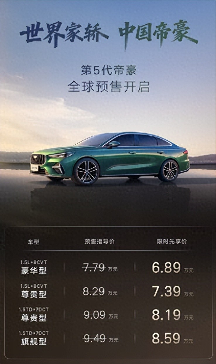 想要宽敞舒适的空间,又担心油耗太高;追求经济实用,又不想牺牲驾乘体验。第5代帝豪用越级的空间表现让每次出行都舒适自在,更以出色的动力油耗将用车成本控制在理想范围,再加上6.89万元起的亲民预售价,堪称当代家庭用车的超值之选。