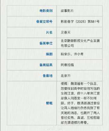 网传电影《见春天》陈飞宇、王影璐 3月开机