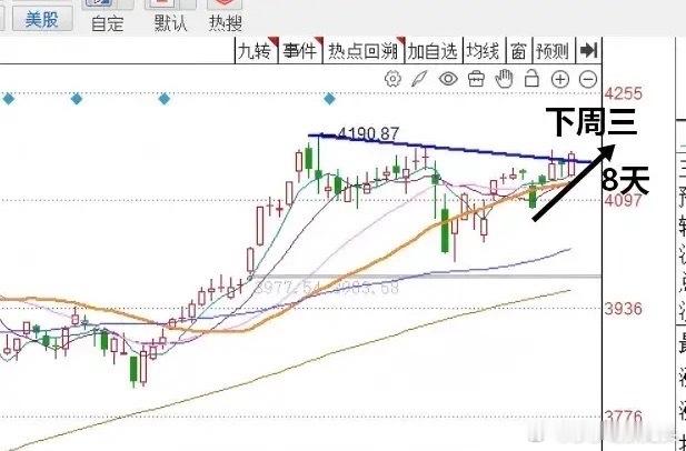 第2个要补充的细节是,由于今天市场向上突破的力度并不大,那么可能在下周星期一、星期二的时候,市场还会延续小k线震荡,收小十字星的这种走势,然后在星期三的时候才会出现较为明显的上行动作。