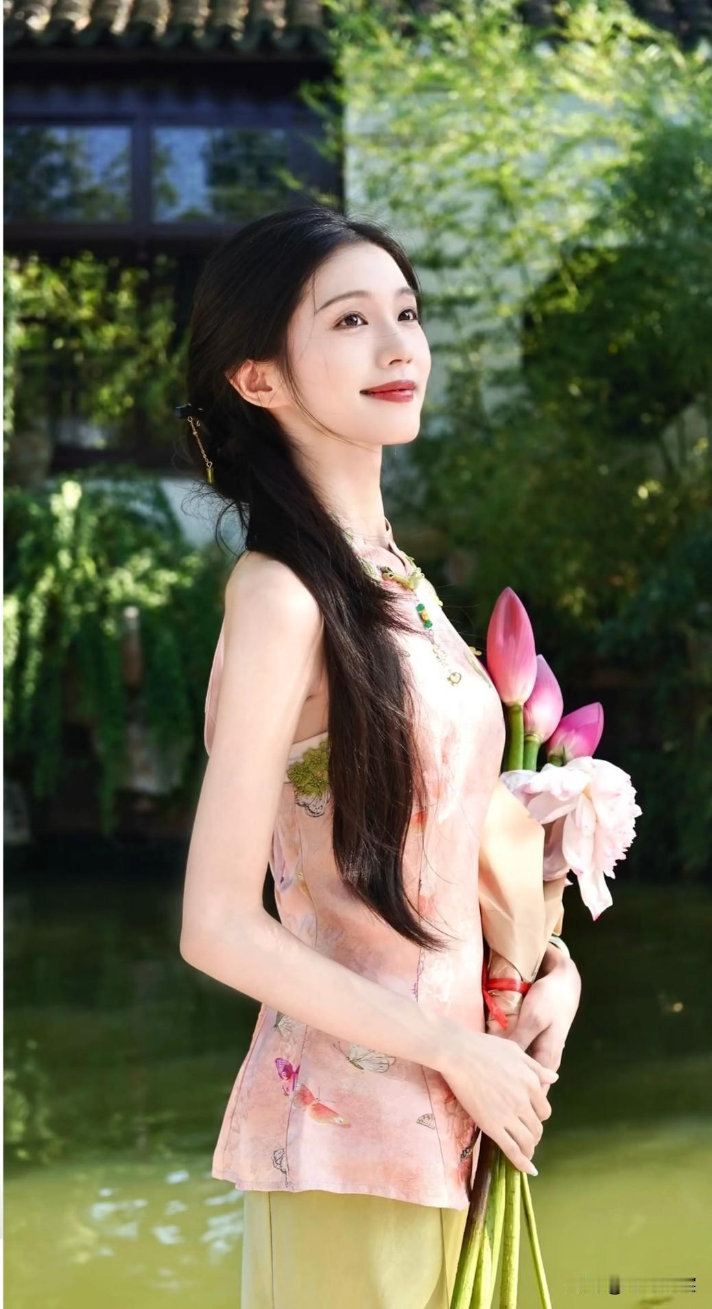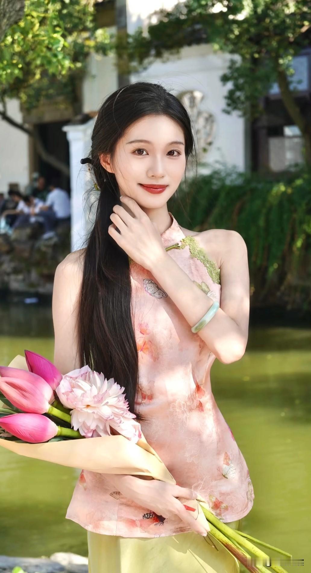 粉嫩汉服,绿意盎然,古典优雅,韵味十足!🌸💕