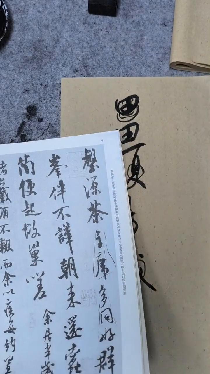 米芾《苕溪诗帖》节奏特点第1课。 你看那个字全都是这种,这一行一竖下来有多少个字都是竖的,竖式的,中式的,包括这个旗也是送中式的。九个字的六个字里面六个字都是这种中式的,只有几个方的字,扁的字来做穿插跟它搭配。 所以写的时候要注意,让我们去做米芾的创作写法的时候也可以借助这种东西把这种字形给拉长,因为里面穿插一些扁的字,方的字穿插来作为有一种节奏的处理就可以了。这行也是一样的,舒适中式,这就是一个扁一点这里,这个环子拉的很长,这也是一样,包括这两个都是这样下来,就一个这种点的字。 所以它的特点是很明显、很强烈的,写的时候就注意这些,这是这一个特点,有这种意识在脑子里面有去行书、临帖的时候就会容易的多了,把它这种特点给记住就得了。